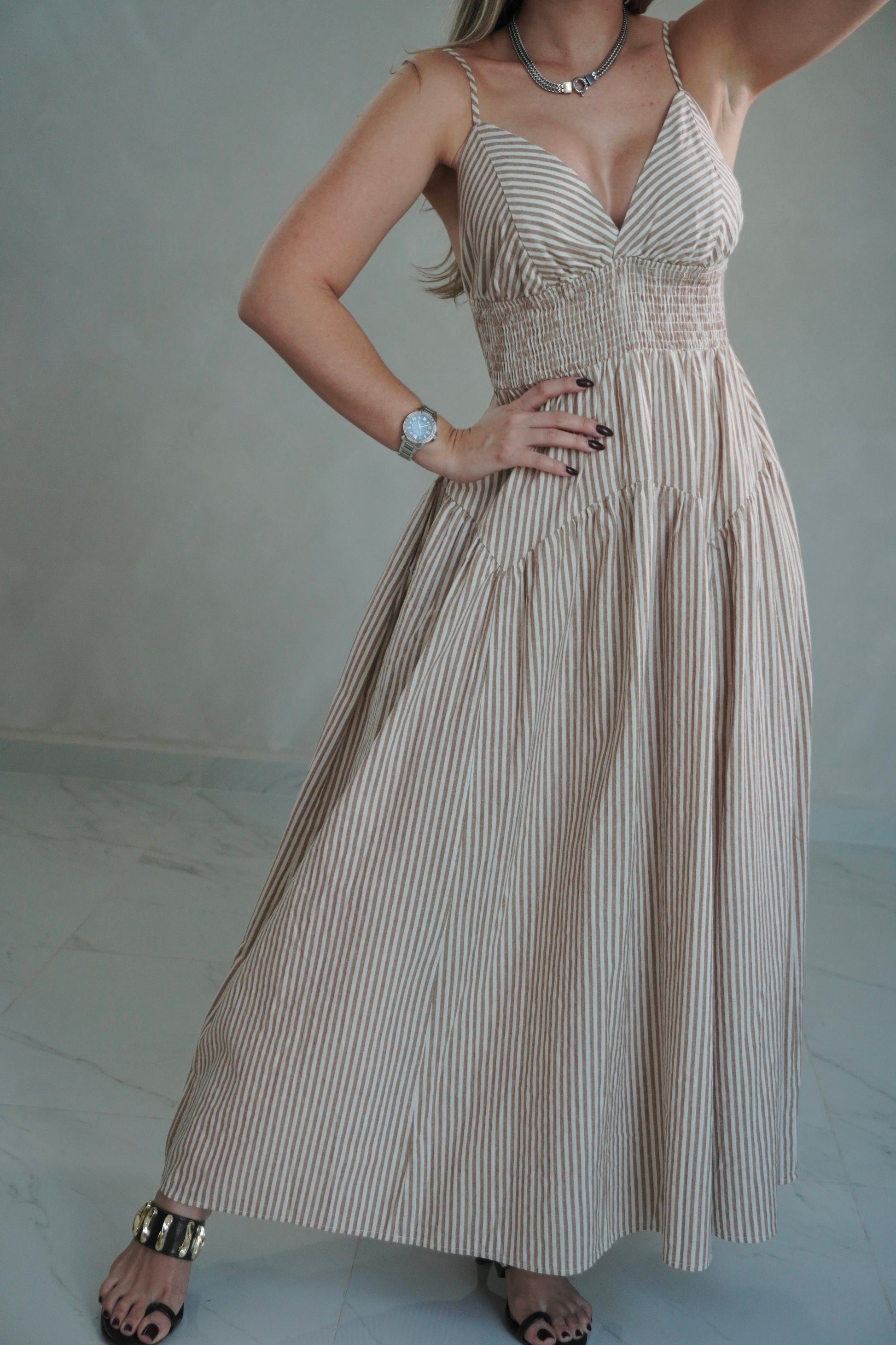 TAUPE STRIPED DRESS